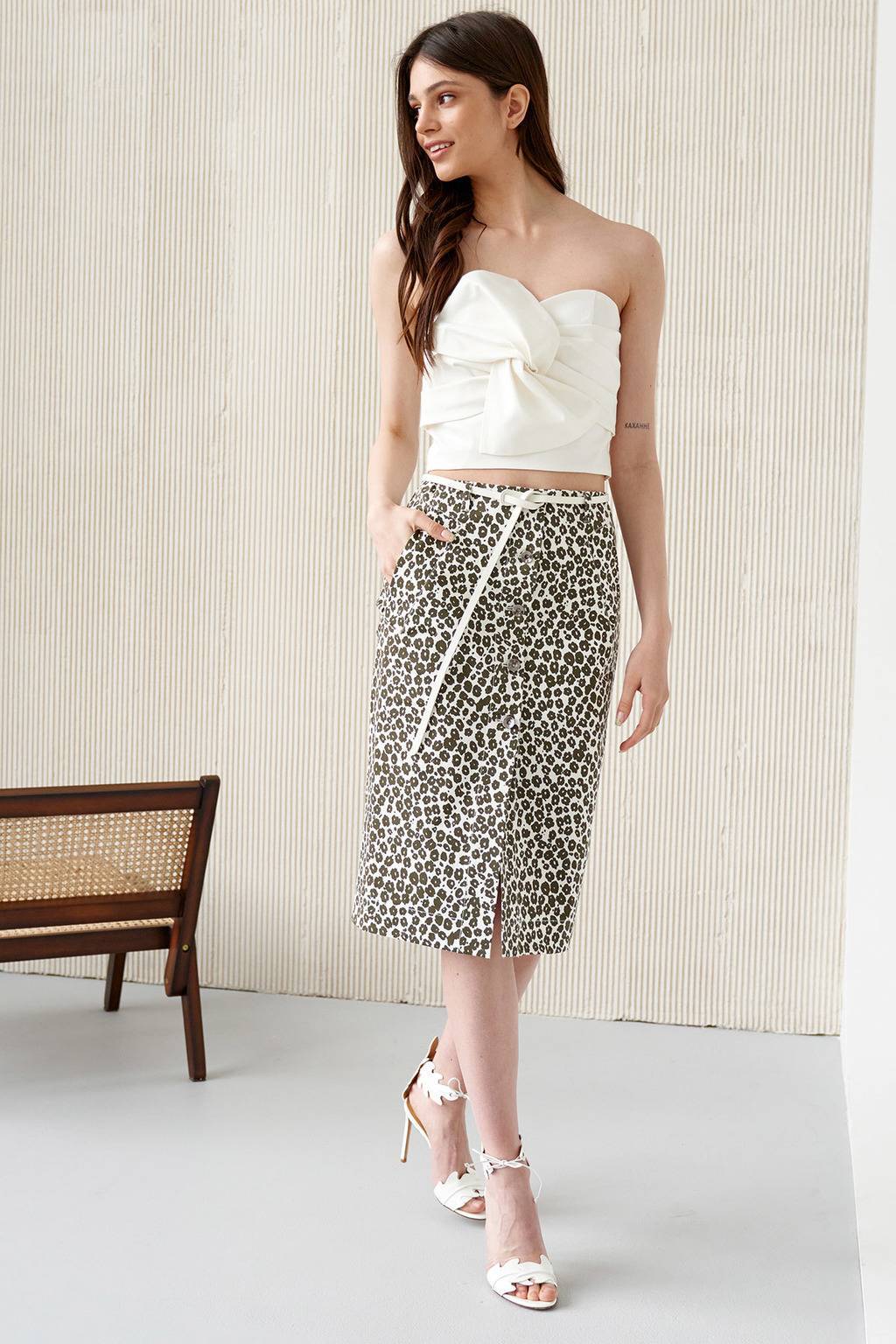 • Юбка на талии длиной 65 см• Пояс на обтачке• Центральна застежка по планке на петли и джинсовые пуговицы• Наклонные карманы с широкими листочками по переду• Съемный пояс в комплектеДжинс-стрейч: 98% хлопок, 2% эластан(производство Италия)
