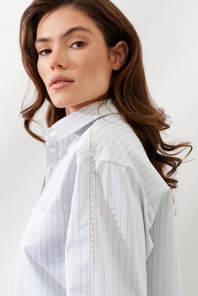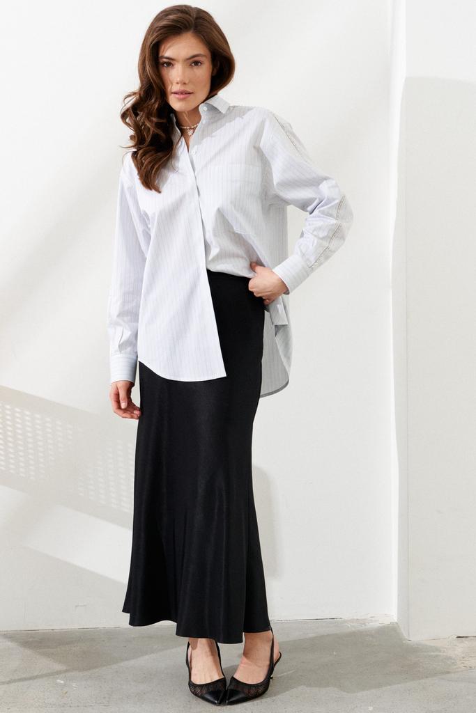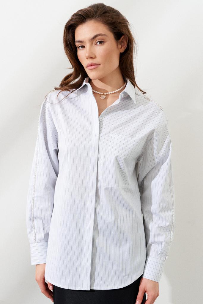 • Рубашечный покрой рукава с тесьмой, украшенной бисером, длиной 74 см от горловины.