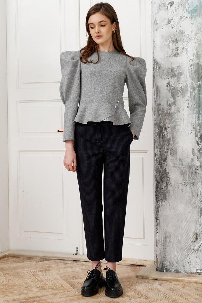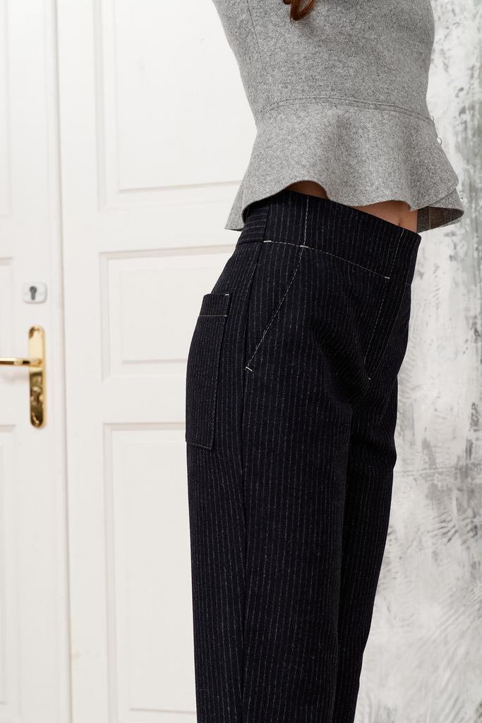 Укороченные брюки длиной по боковому шву 94 см с широким цельнокроеным поясом ниже линии талии