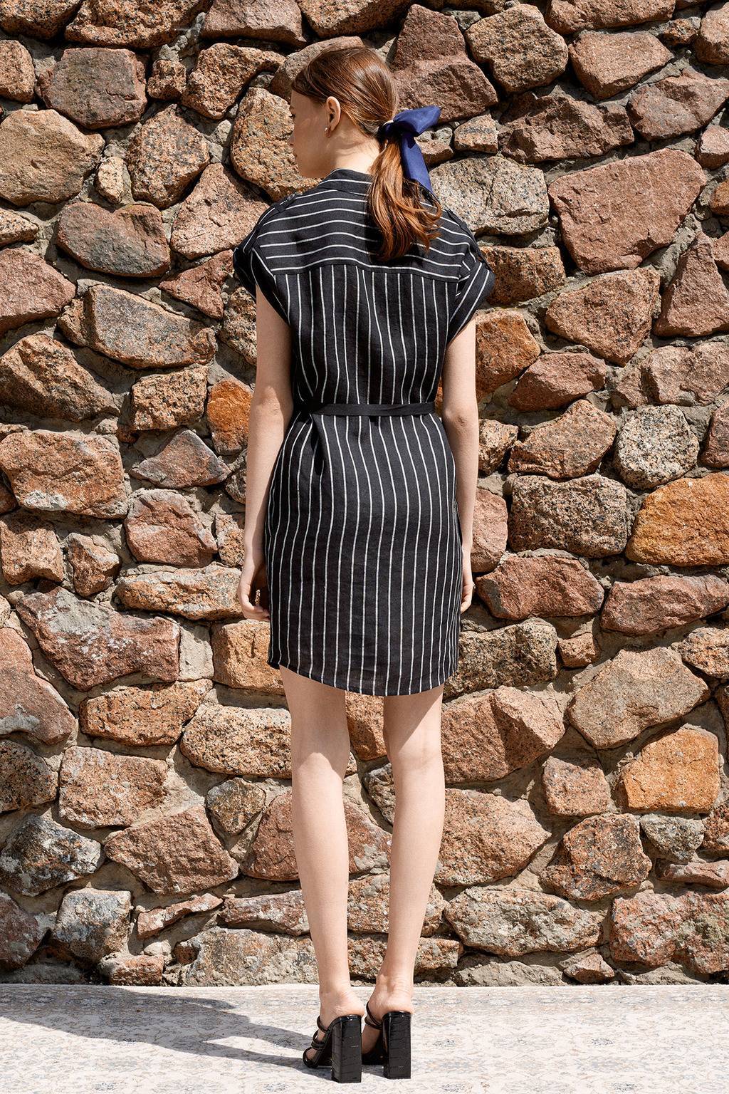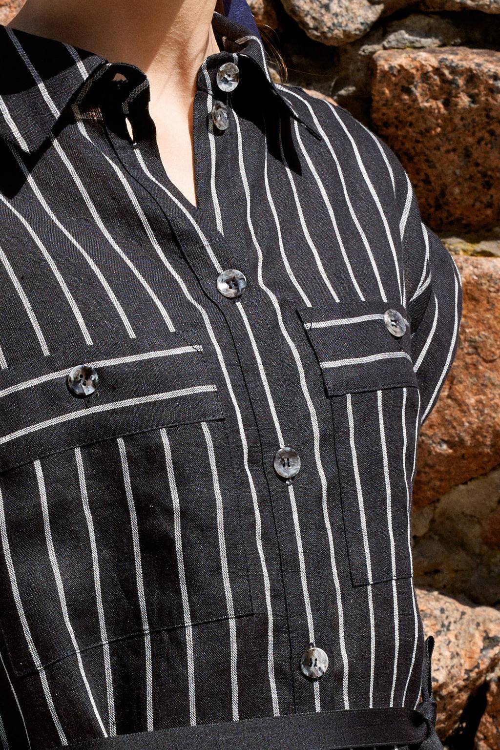 Состав: плательная ткань в полоску:100% лён (производство Италия) 170