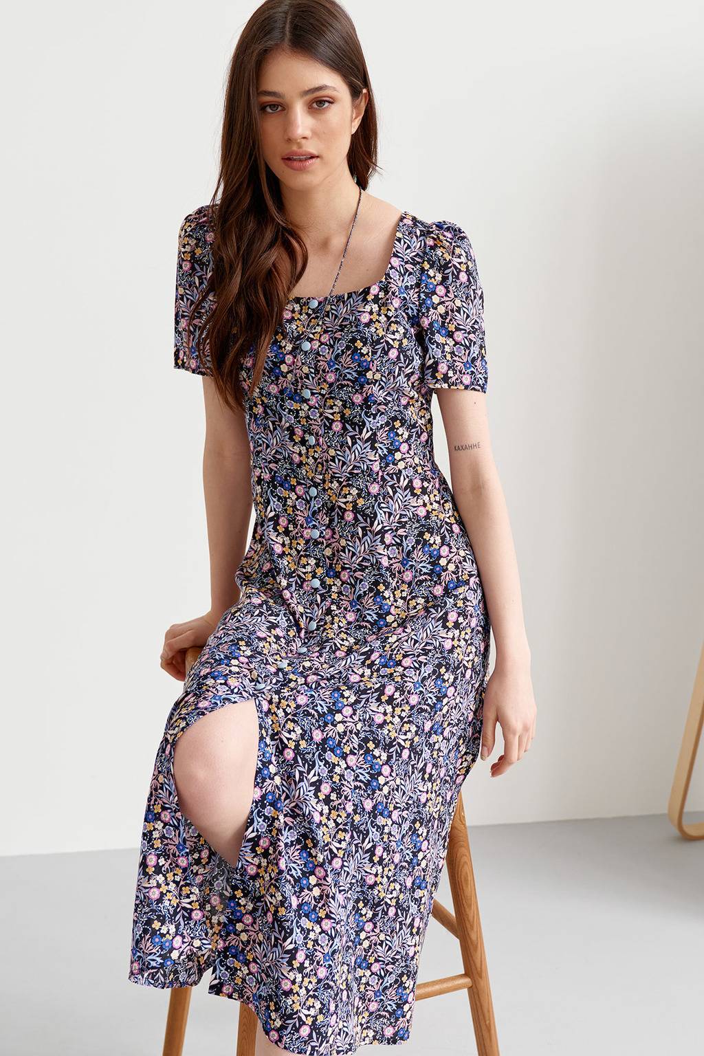 • Платье отрезное по линии талии длиной 115 см