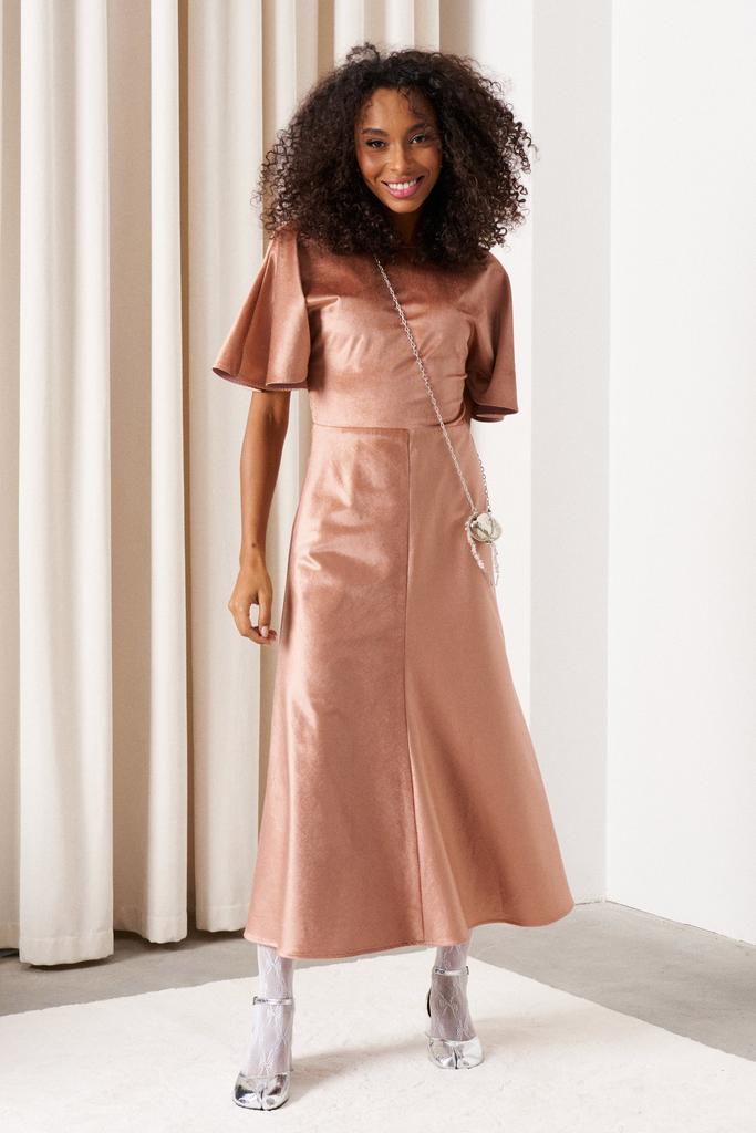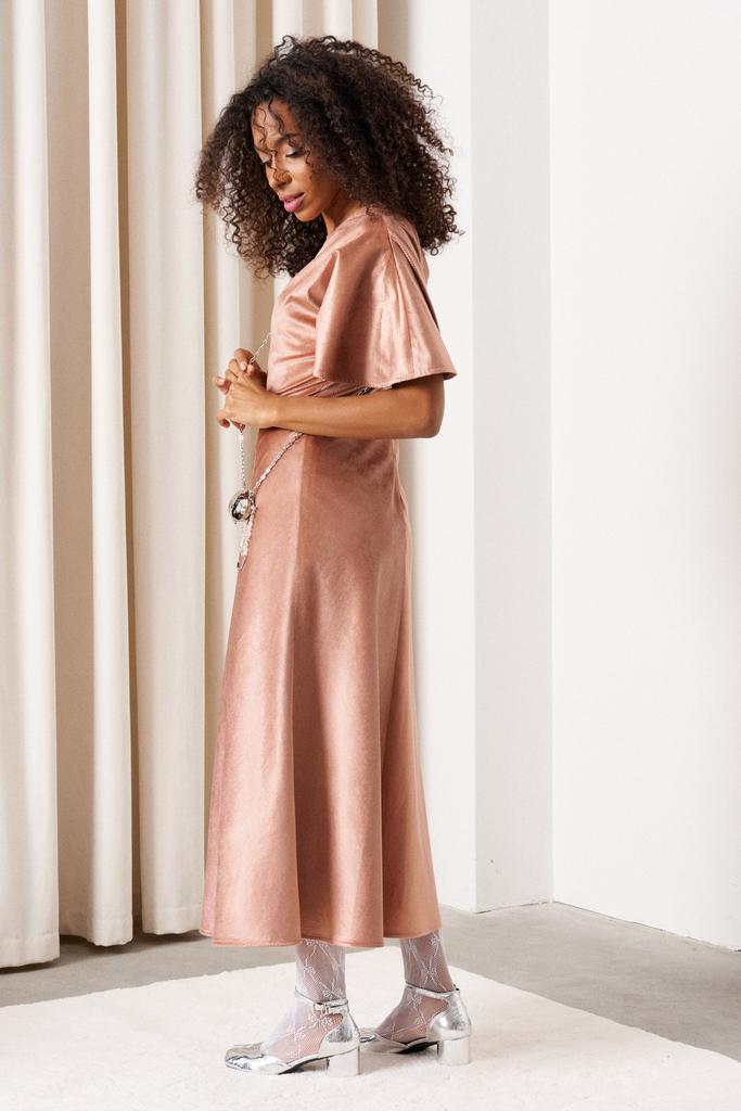 • Платье прилегающего силуэта из трикотажного полотна в рубчик длиной 125 см.