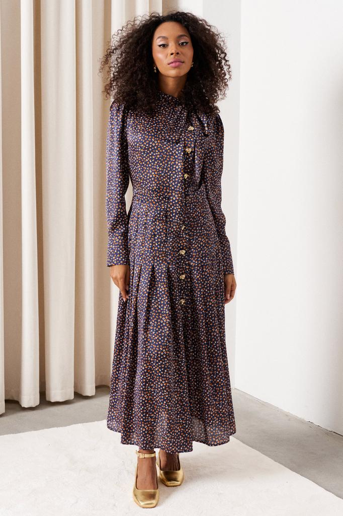 • Платье с отрезным поясом по талии длиной 122 см.
