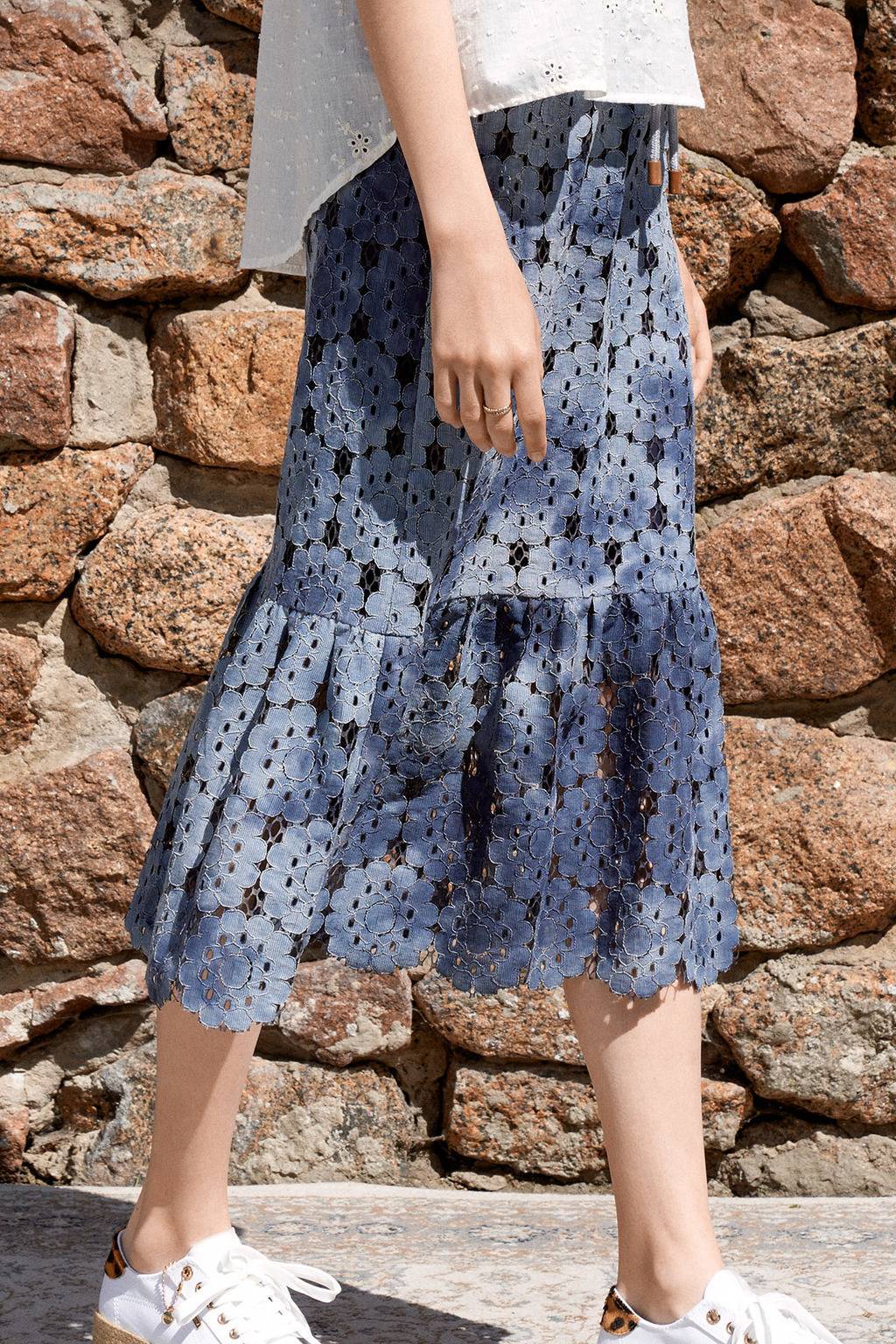 • Юбка длиной 81 см• Отрезной эластичный пояс с завязками-шнурками• Широкая оборка по низу• Изделие на подкладкеСостав: кружевное полотно: 70% хлопок,30% полиэстер(производство Италия)Подкладка: 100% хлопок(производство Китай)